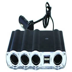 תיאור: מפצל מצית x4 + 2x USB + חוט