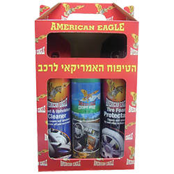 שם המוצר: מארז טיפוח אמריקן איגל – מנקה ריפוד + מחדש צמיגים + ספריי ( תרסיס ) סקאי
